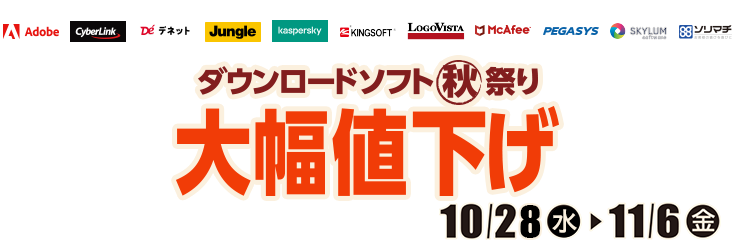 期間限定で、ダウンロードソフトが最大20%オフです!!